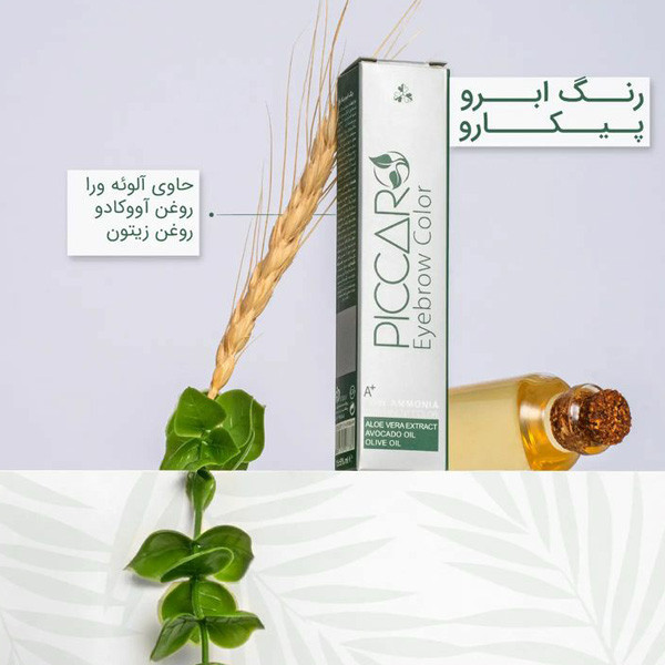 رنگ ابرو پیکارو حاوی روغن کنجد، روغن آرگان، روغن جوجوبا، روغن بادام، روغن زیتون، ویتامین E ، C ، B ، نرم کننده، عصاره جوانه گندم، عصاره آلوئه ورا و کراتین هیدرولیز شده میباشد که موجب آبرسانی، درخشندگی و شفافیت موها میشود و از خشکی و شکنندگی موها جلوگیری میکند.